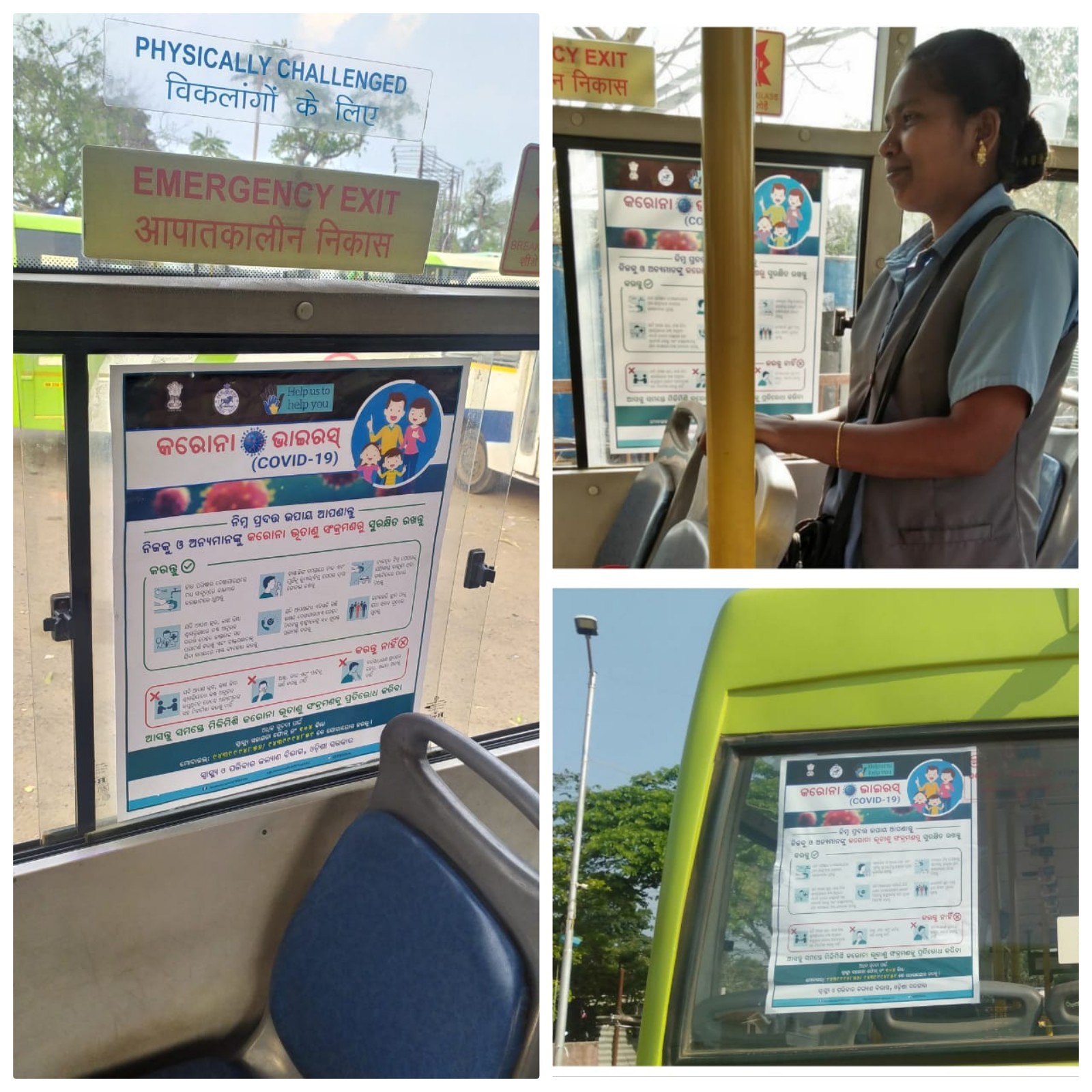 Awareness posters stuck inside Mo Bus when the first Covid positive case was identified in India